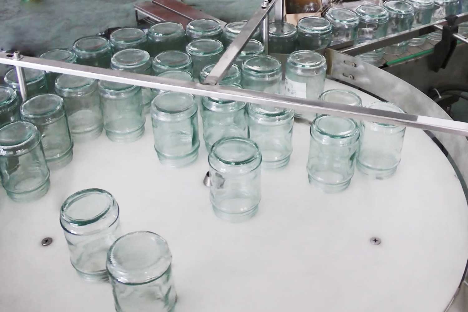 旋蓋機主要用于玻璃廣口瓶的三、四、六鐵蓋真空旋蓋,用兩根不同速度的皮帶壓瓶蓋,因兩根皮帶的速度不同,對蓋進行搓蓋收緊達到旋蓋目的。在自動上蓋之前對瓶口吹蒸汽加熱,吹掉冷空氣,換上高溫蒸汽,立即旋蓋,根據熱脹冷縮原理,蒸汽冷下來就自然形成了瓶內真空,達到了真空旋蓋的目的。自動旋蓋機可以和濃醬灌裝機、蜂蜜灌裝機、辣椒醬灌裝機組合在一起,形成一套全自動灌裝設備,是現代調味品企業的得力幫手。