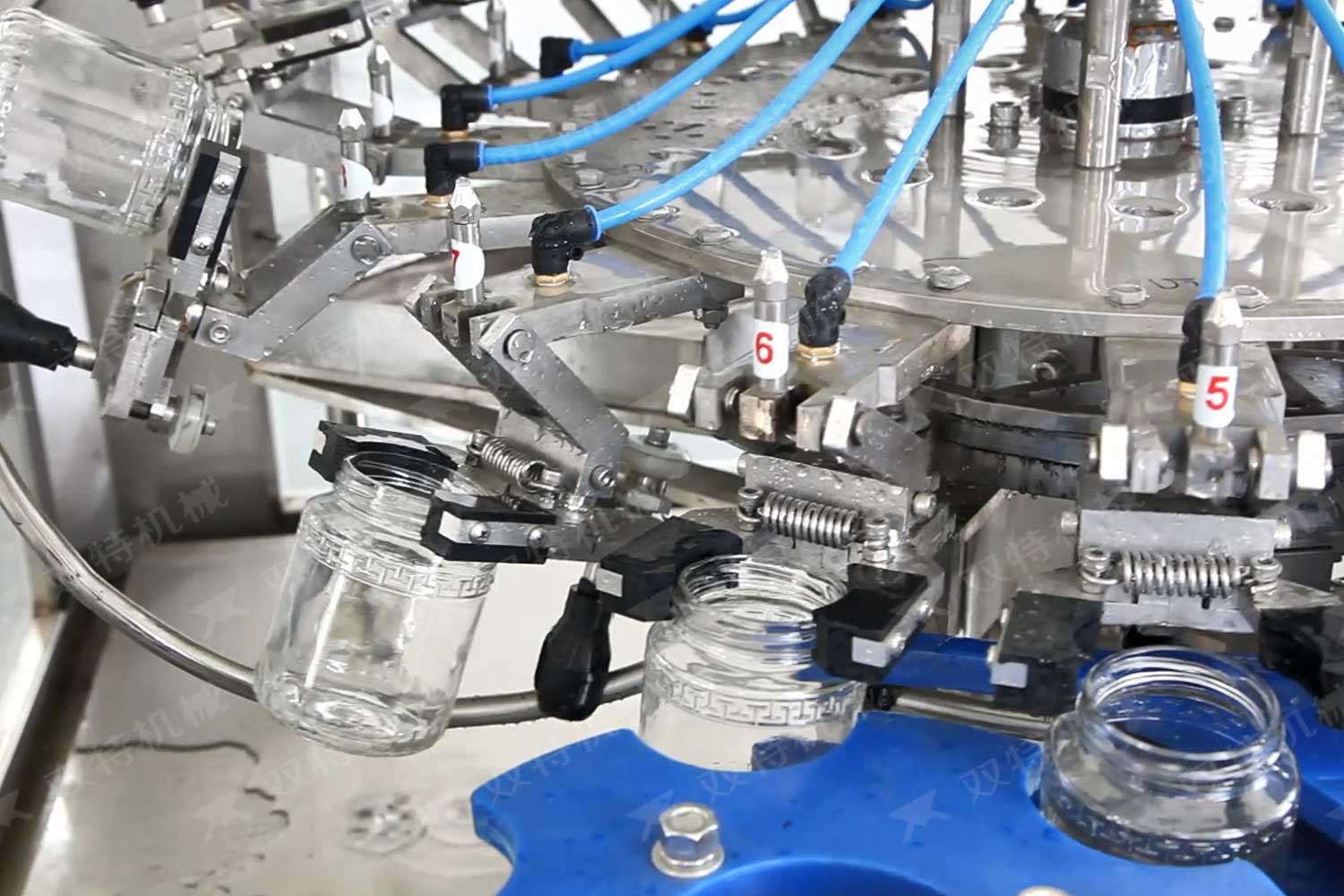 洗瓶機的過程是空瓶進入輸瓶螺桿,由星輪傳動到夾瓶工位,洗瓶的整個過程瓶底均懸空,其優點是著力點在瓶頭和頸部,是瓶子厚硬的部分,在清洗過程中不會損傷或壓扁,洗瓶機可調整多種瓶子,且調整簡便。