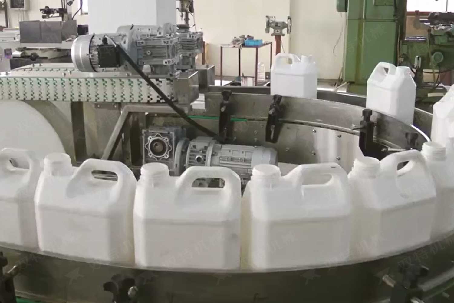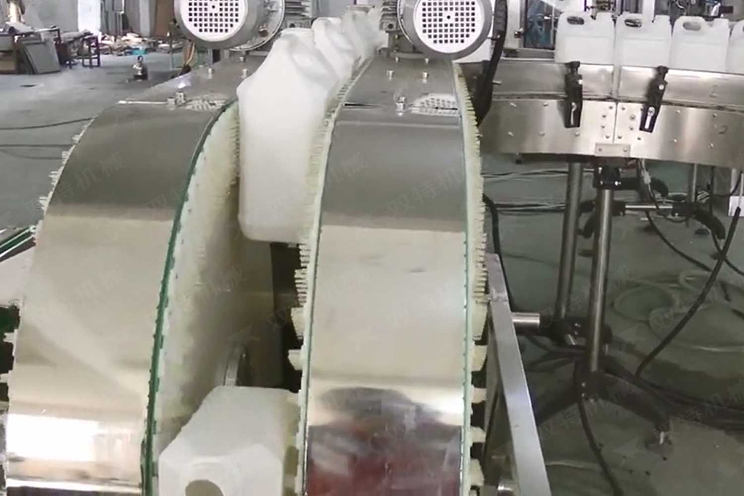 旋蓋機主要用于玻璃廣口瓶的三、四、六鐵蓋真空旋蓋,用兩根不同速度的皮帶壓瓶蓋,因兩根皮帶的速度不同,對蓋進行搓蓋收緊達到旋蓋目的。在自動上蓋之前對瓶口吹蒸汽加熱,吹掉冷空氣,換上高溫蒸汽,立即旋蓋,根據(jù)熱脹冷縮原理,蒸汽冷下來就自然形成了瓶內(nèi)真空,達到了真空旋蓋的目的。自動旋蓋機可以和濃醬灌裝機、蜂蜜灌裝機、辣椒醬灌裝機組合在一起,形成一套全自動灌裝設備,是現(xiàn)代調(diào)味品企業(yè)的得力幫手。